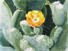 I was inspired by the booms on the cactus in my daughter's front yard during a recent trip to El Paso, Texas. Didn't have time to paint it then, but I've been harboring the urge ever since returning.